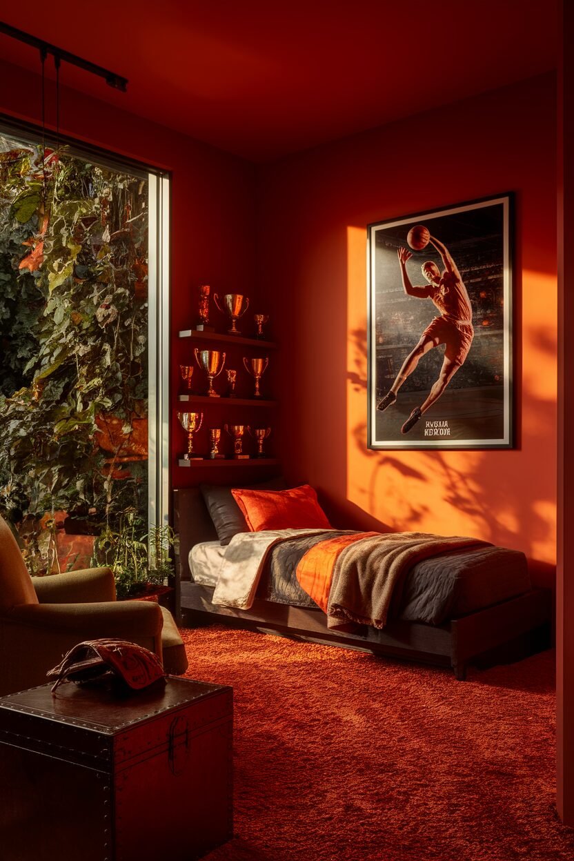 Display sports memorabilia and use themed bedding. Create a mini trophy shelf to showcase achievements.