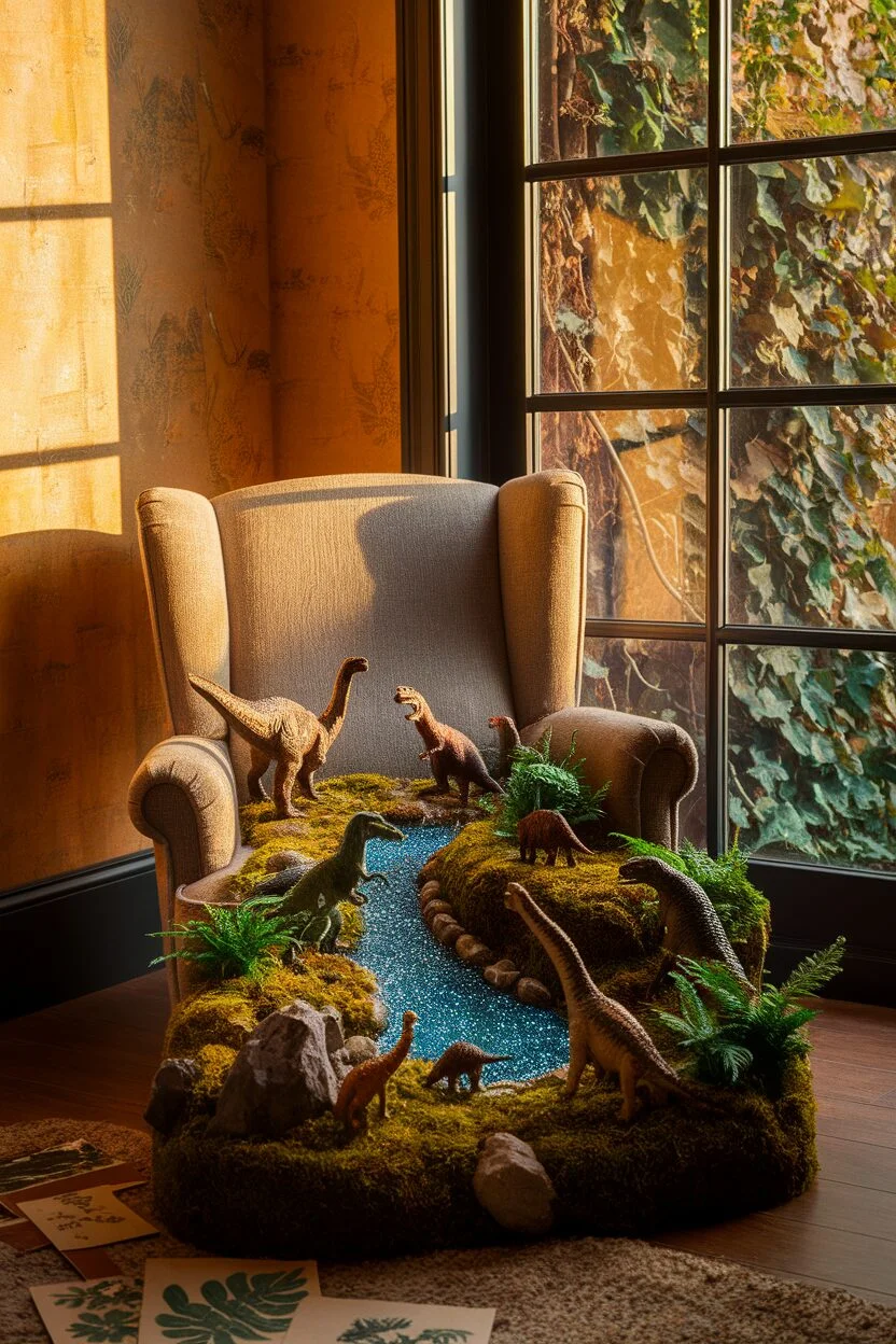 Add dinosaur wall decals and fossils. Create a reading nook with dinosaur-themed books.