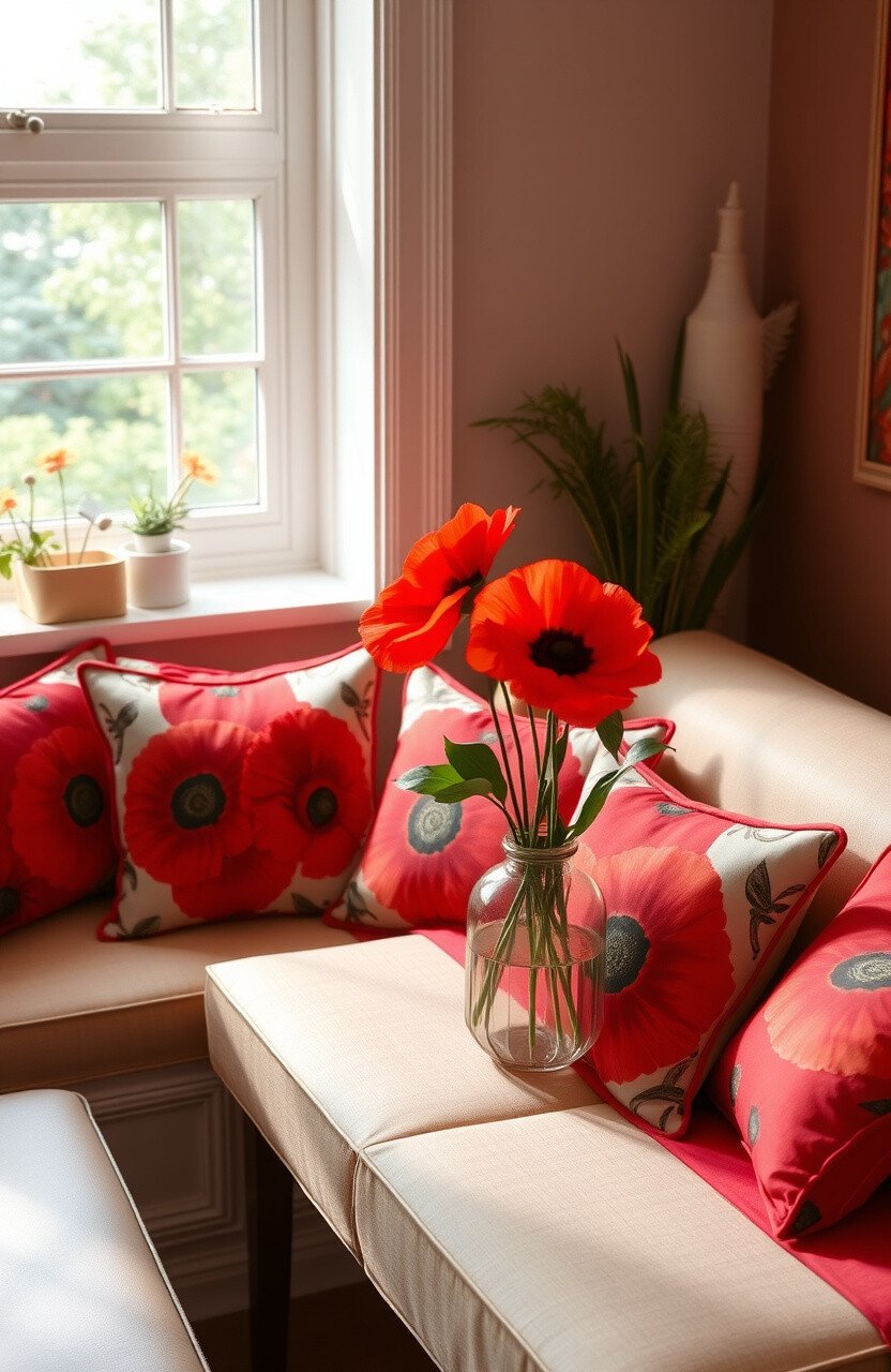 Coral cushions bring a warm, inviting feel to your breakfast nook. They are perfect for creating a cozy, cheerful atmosphere.