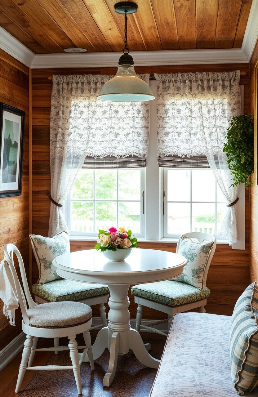 Use lace curtains and floral patterns to enhance the vintage vibe. These details add a touch of elegance.