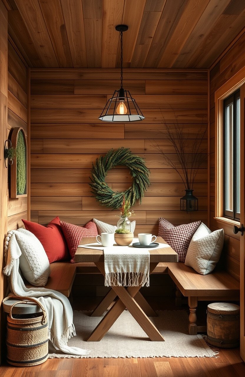 Create a warm and inviting space with a rustic retreat nook. This style is cozy and full of natural charm.