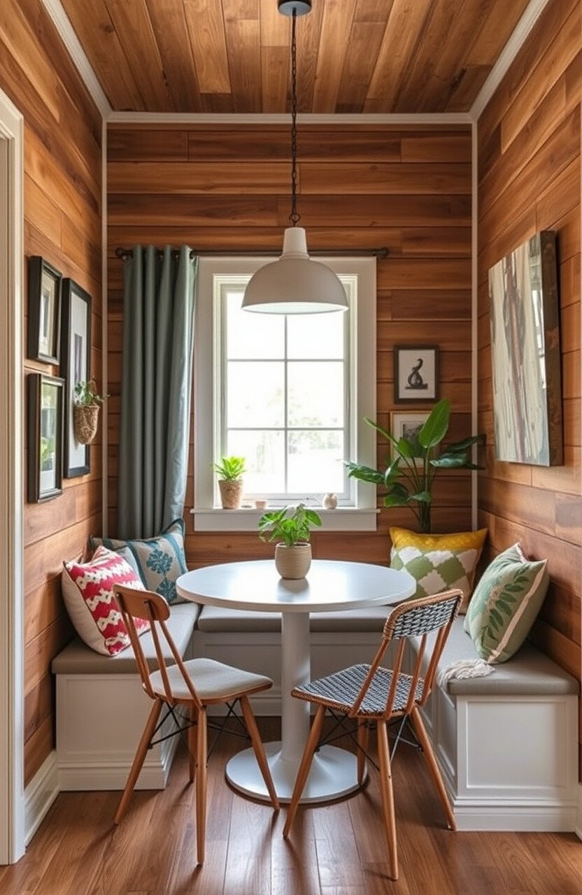 Imagine curling up in a window seat nook with a hot cup of coffee. This cozy idea makes your breakfast space feel like a snug retreat.