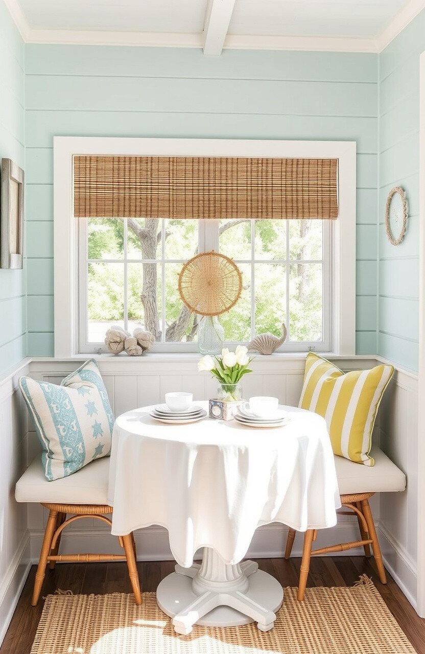 Bring the charm of a coastal cottage into your nook. Use soft blues and whites for a calming look.