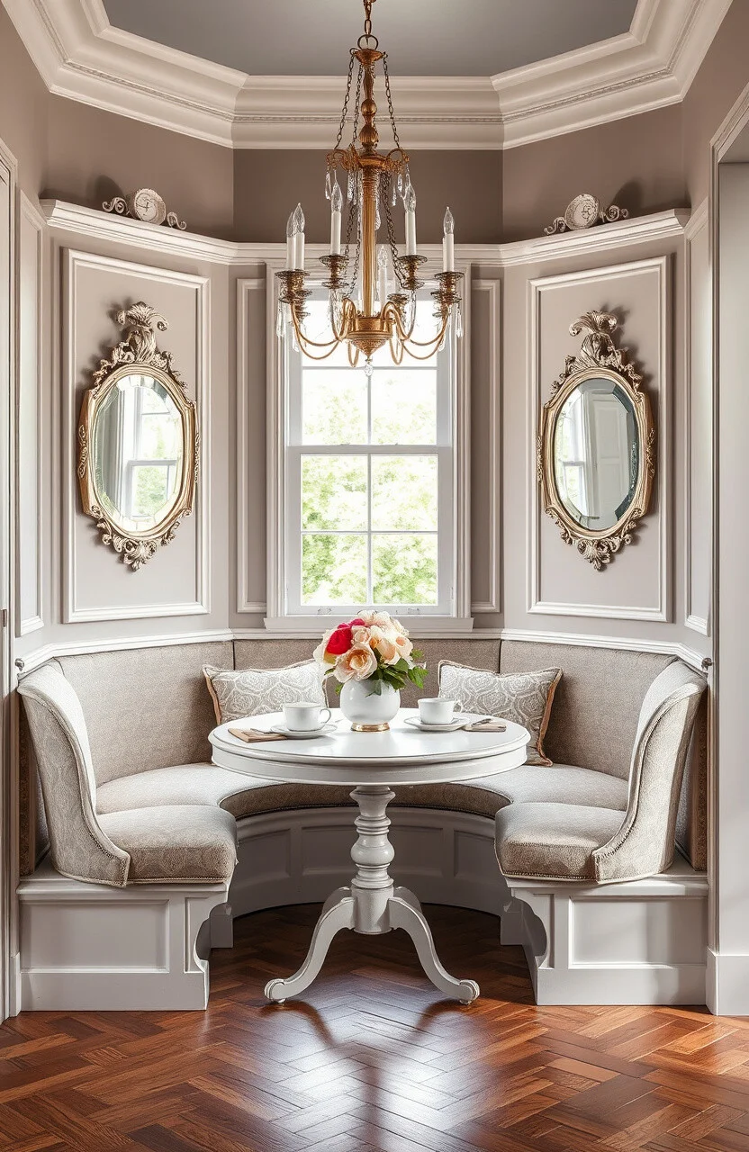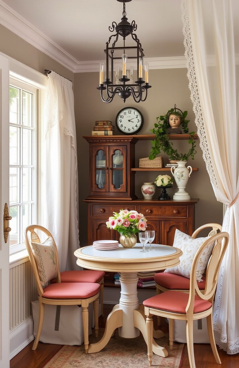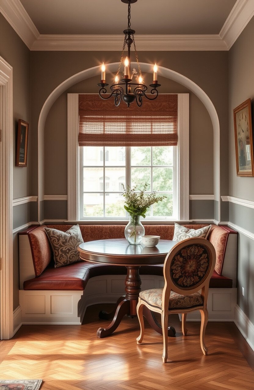 Think of a nook with antique furniture and decorative accents. This idea brings nostalgia and elegance to your breakfast area.
