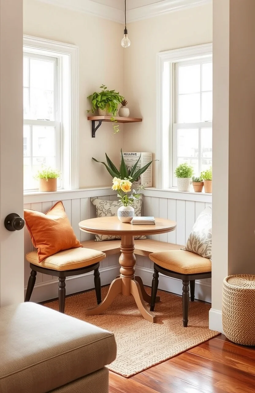 Create a snug corner with a small round table and cushioned chairs. This idea is perfect for an intimate and inviting setting.