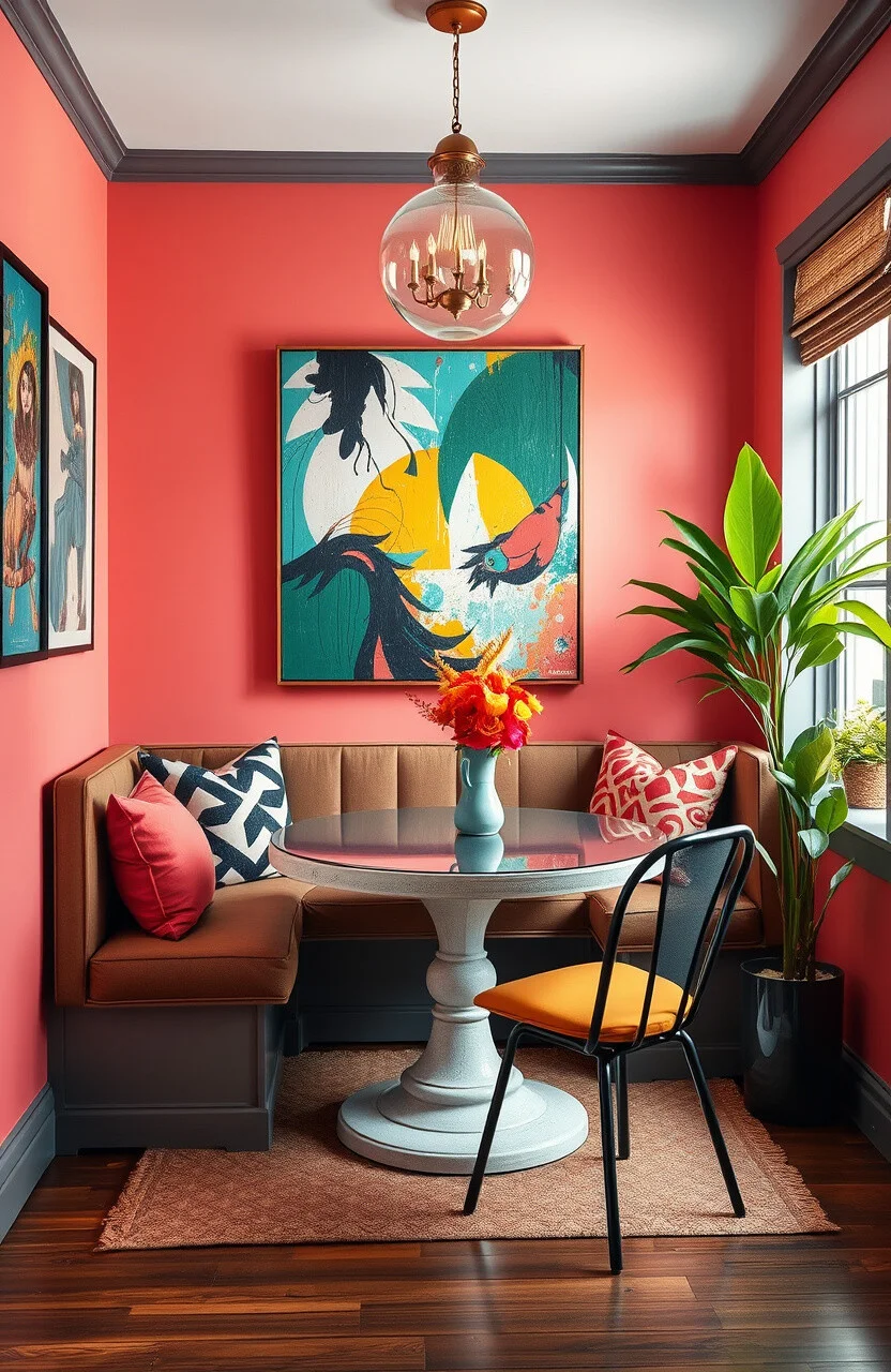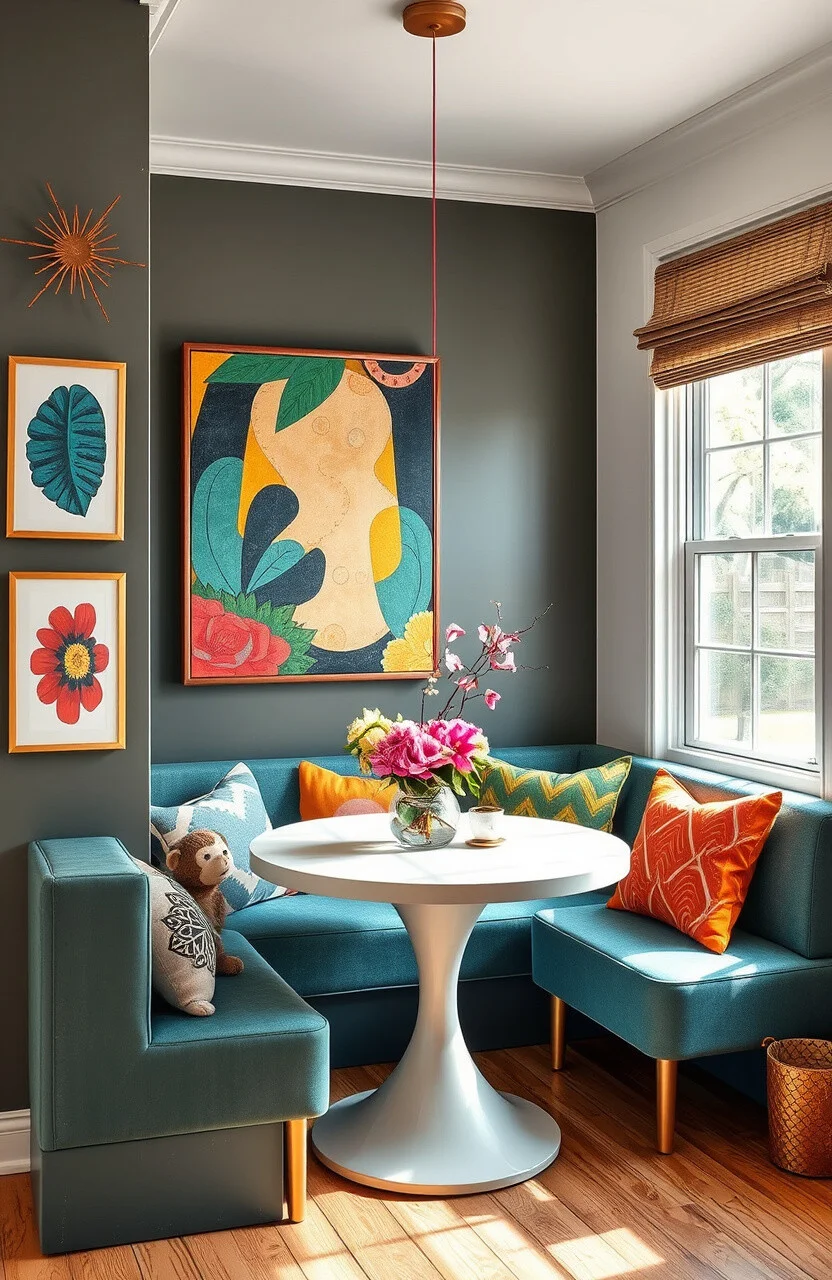 Turn your nook into a canvas with bold art and colorful accents. This idea fosters creativity and a vibrant atmosphere.