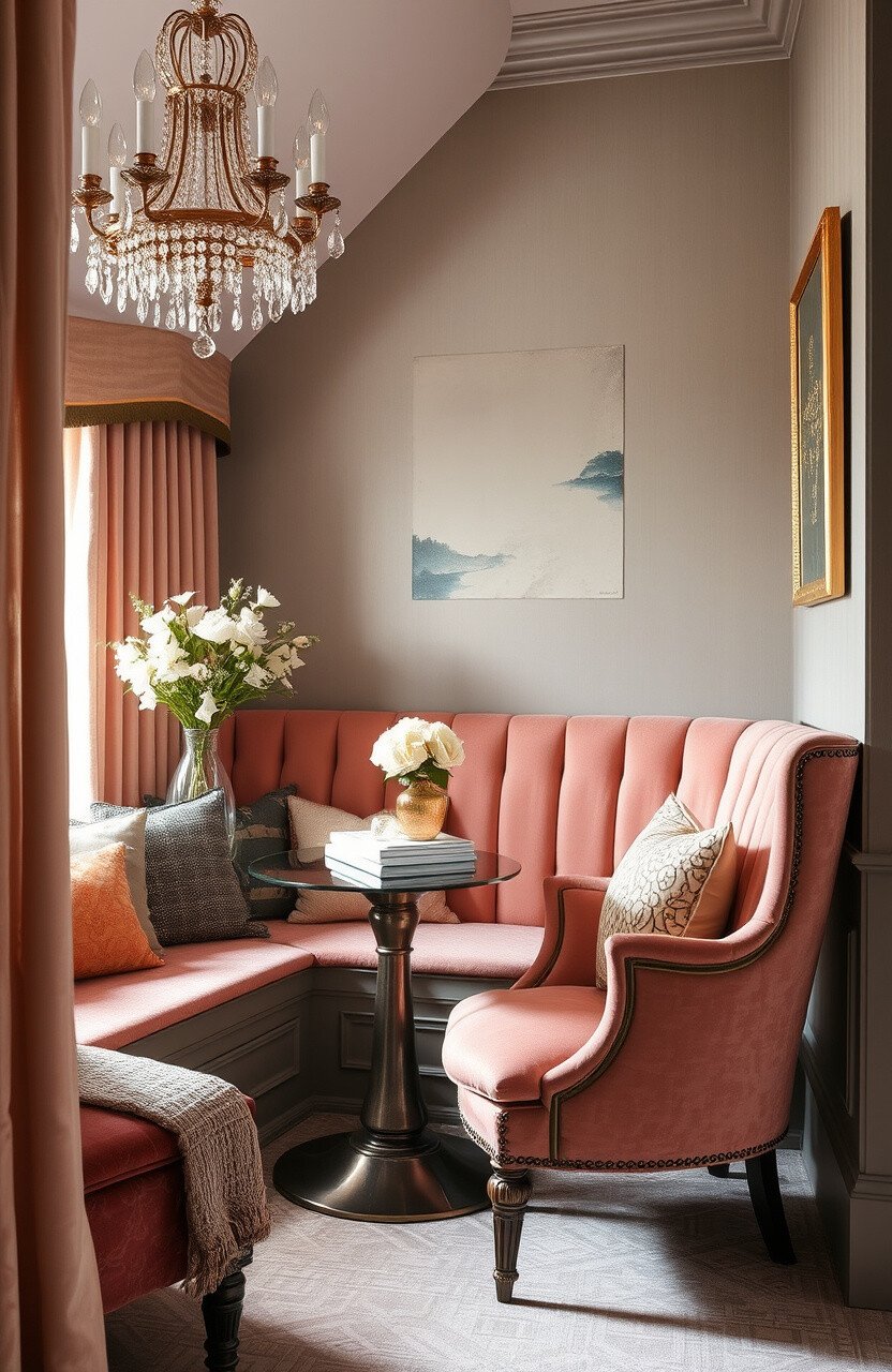 Think of a nook with luxurious fabrics and sophisticated decor. This idea offers a space of elegance and comfort.