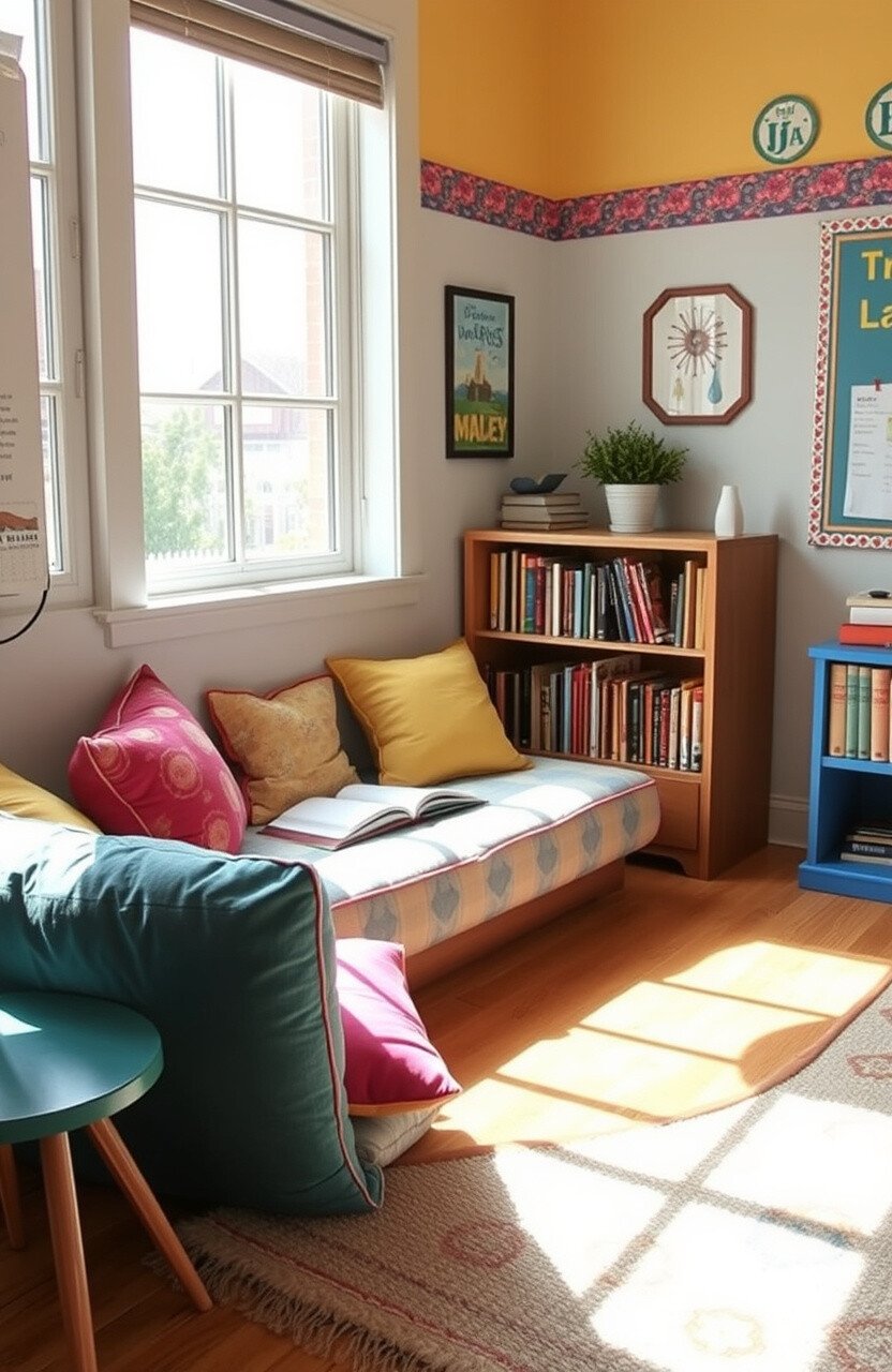 Create a corner with cushions and a small bookshelf for reading. This cozy nook invites students to dive into their favorite books.