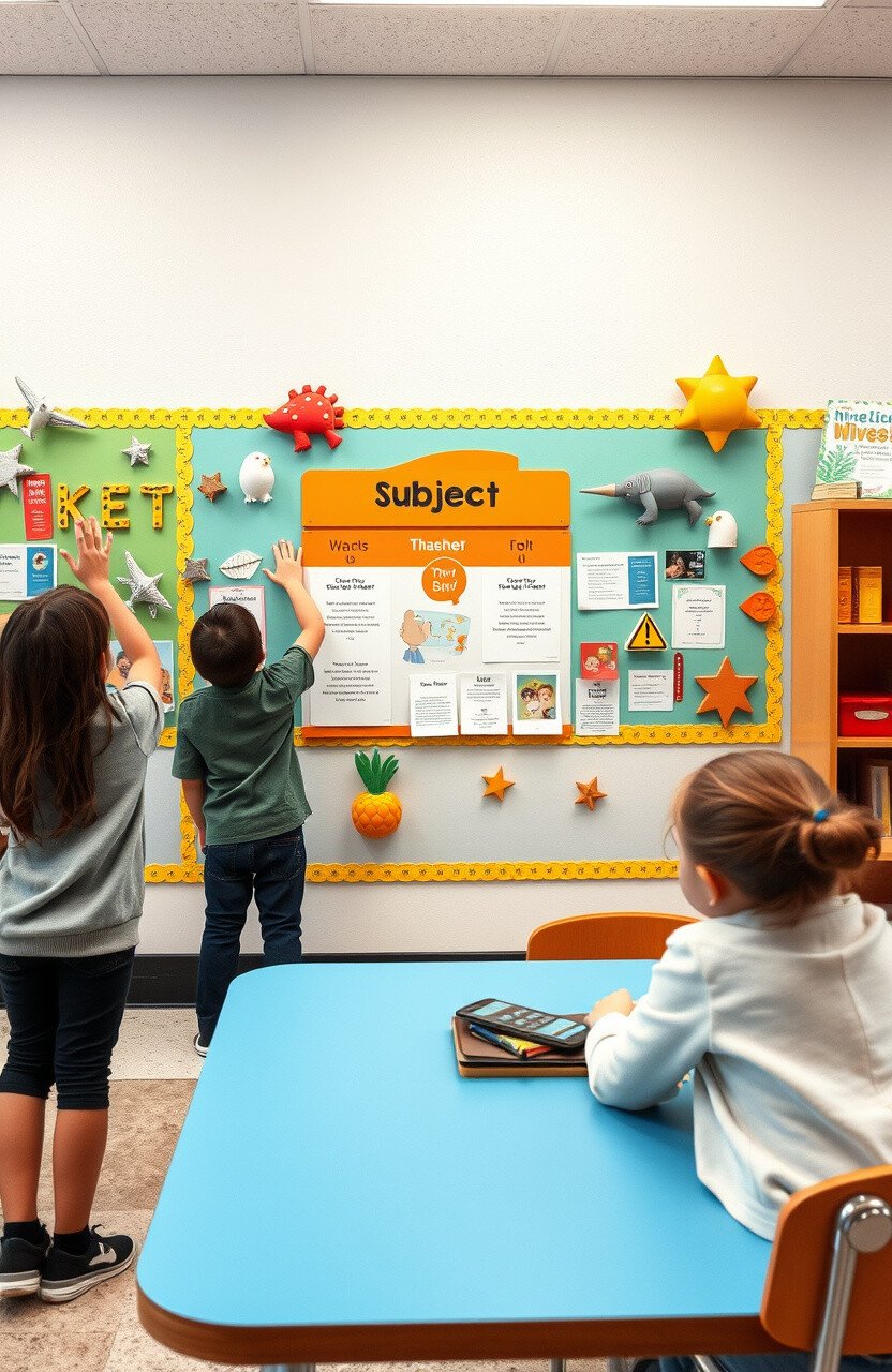 Make bulletin boards interactive with flaps, pockets, or movable pieces. These boards can engage students in a fun and educational way.