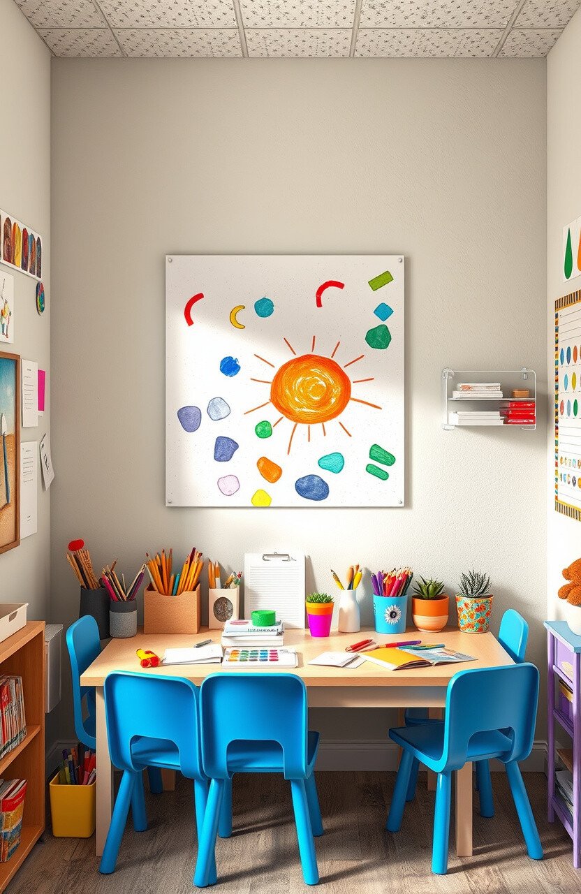Showcase student artwork with DIY art displays around the classroom. This not only decorates the space but also boosts student confidence and pride.