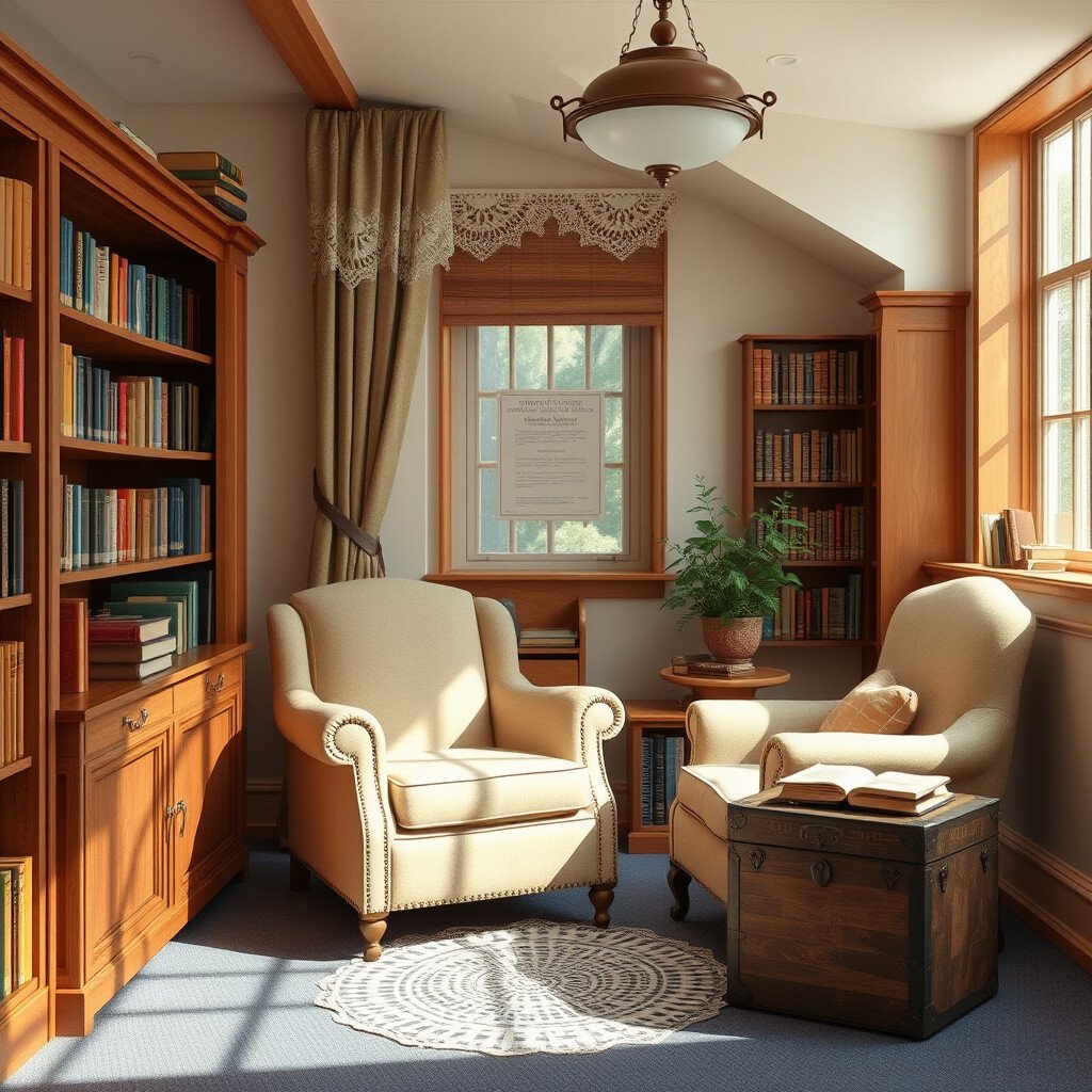 Use vintage furniture like an old armchair or a wooden trunk to create a nostalgic reading nook. Add lace doilies and classic books.