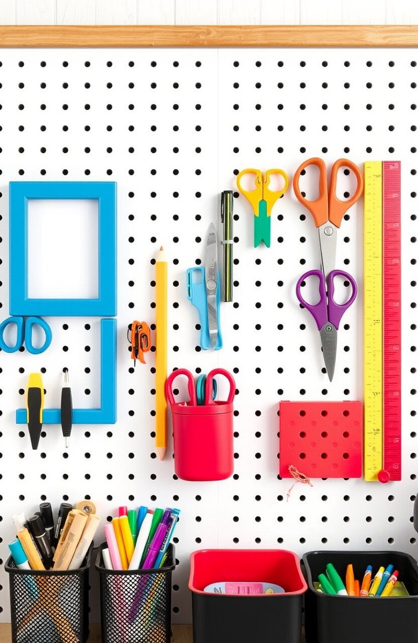 Use a pegboard to organize supplies like scissors, rulers, and markers. It keeps everything neat and within reach.