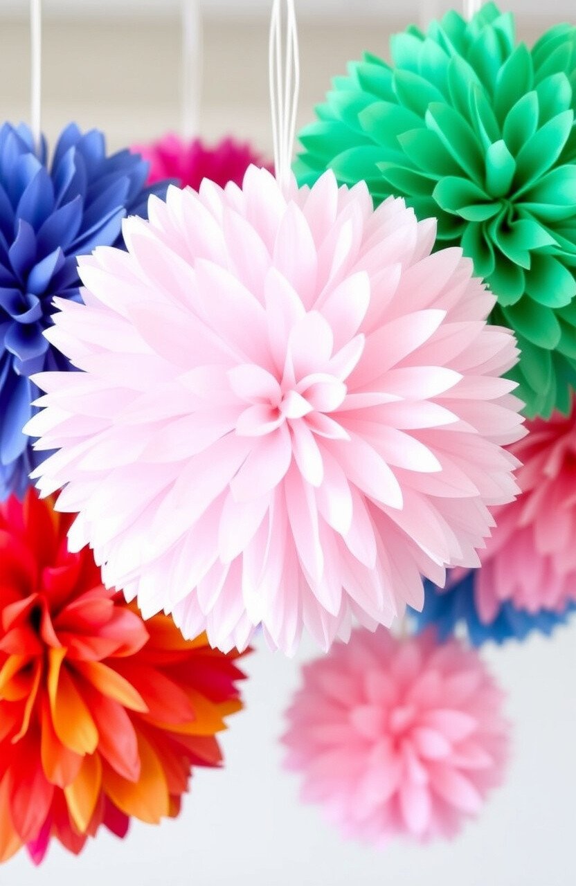 Create tissue paper pom-poms for a fluffy and fun look. They’re colorful and easy to make.