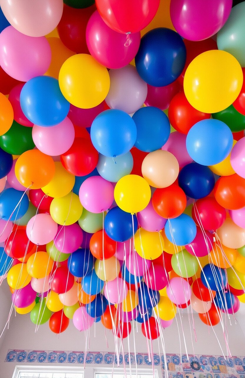 Fill the ceiling with colorful balloons for a festive and playful look. It’s a party in the sky.