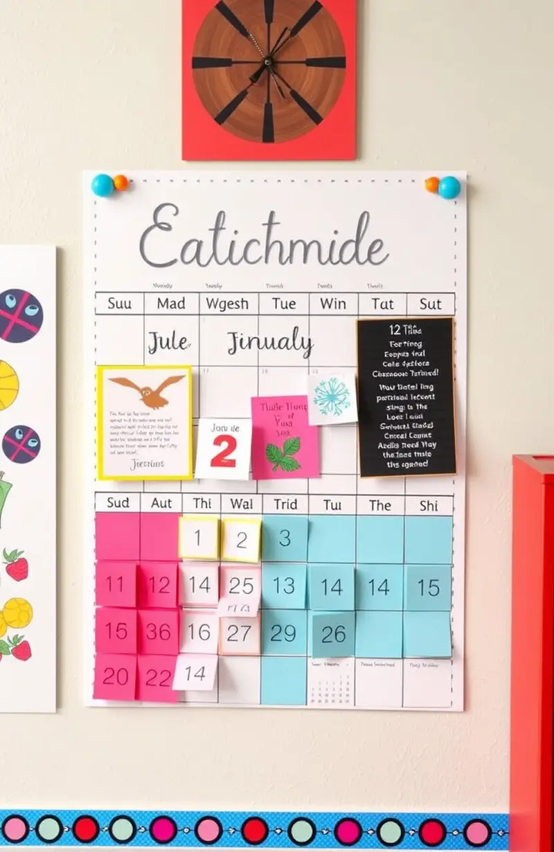 Design a classroom calendar with themes that change monthly. It’s a decorative and functional piece.