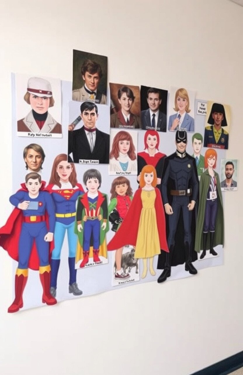 Create a wall dedicated to historical or fictional heroes. It’s inspiring and educational.