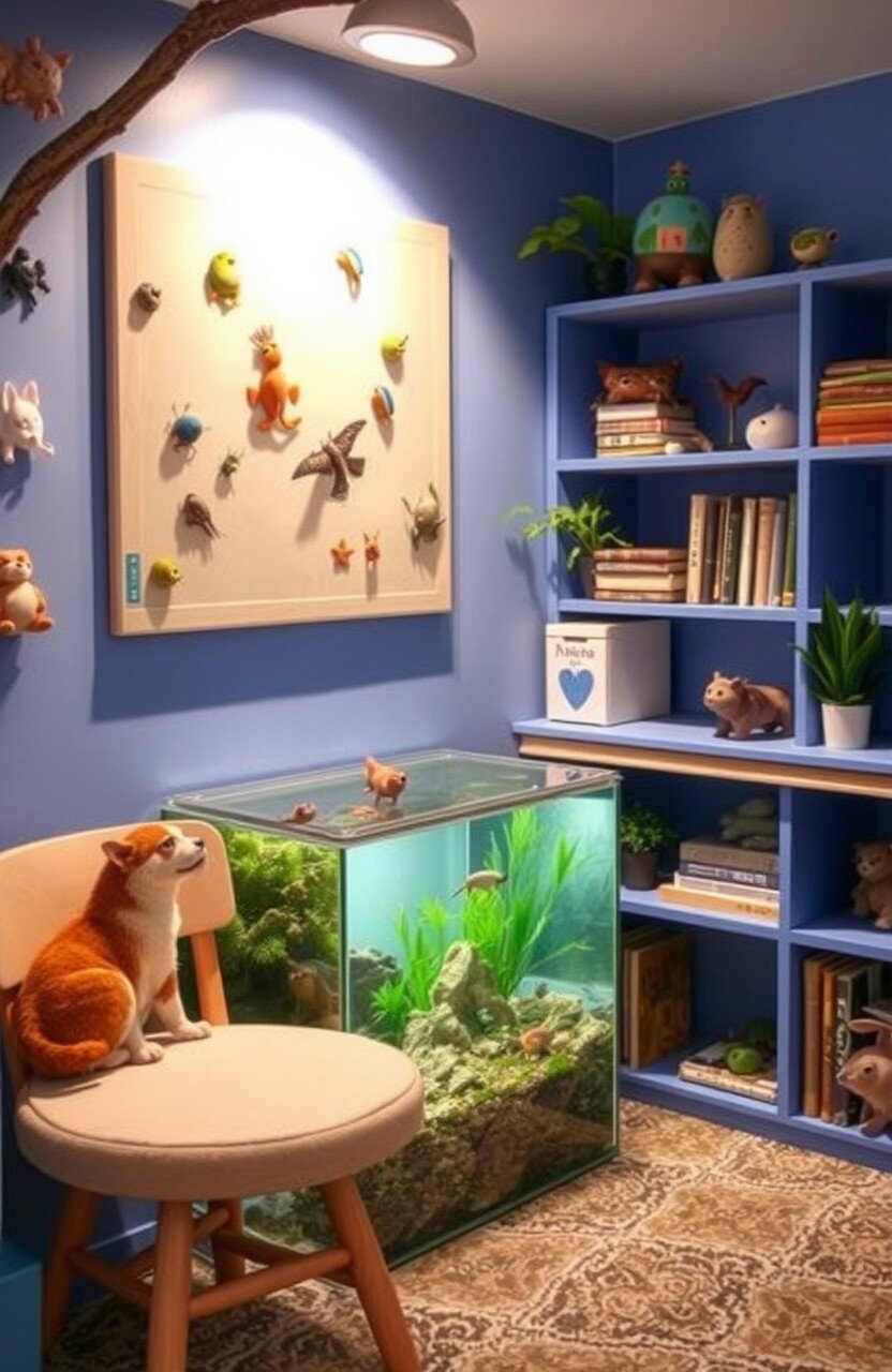 Use a terrarium or aquarium to house small pets. Include books and materials about their care and habitat.