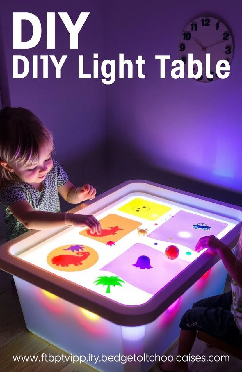 Create a DIY light table using a plastic bin and LED lights. It’s a fascinating way for kids to explore light and color.
