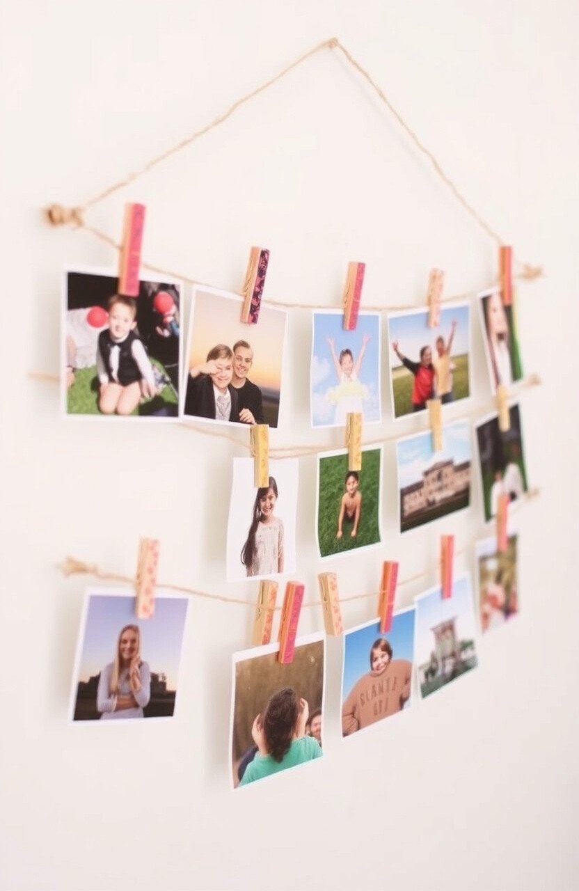 Personalize with decorative clips. Clip string displays are a creative way to showcase ever-changing art.