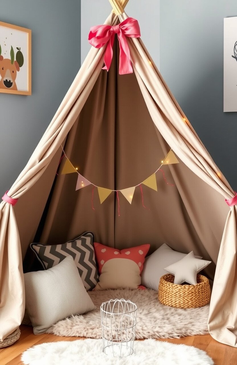 Use a DIY kit or create one with fabric and poles. Add cushions or a plush rug inside.
