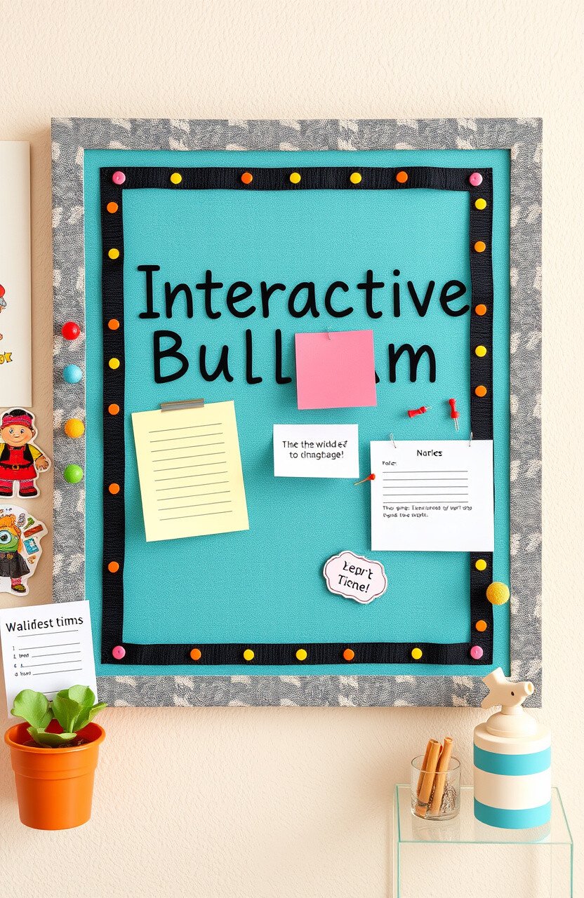 Use corkboards or fabric-covered foam boards. Decorate with colorful pins to make it inviting.