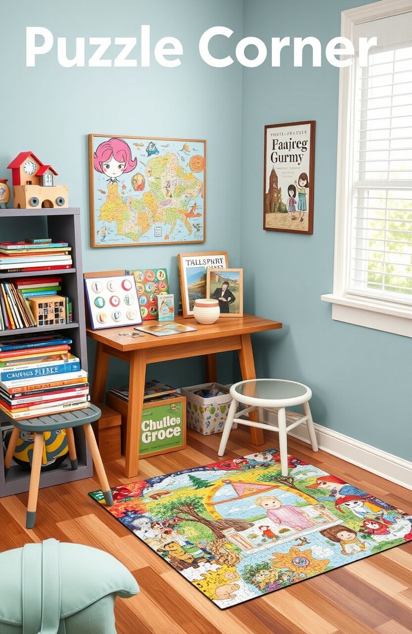 Set up a puzzle corner with a small table and a collection of puzzles. It’s a quiet activity that offers mental engagement.