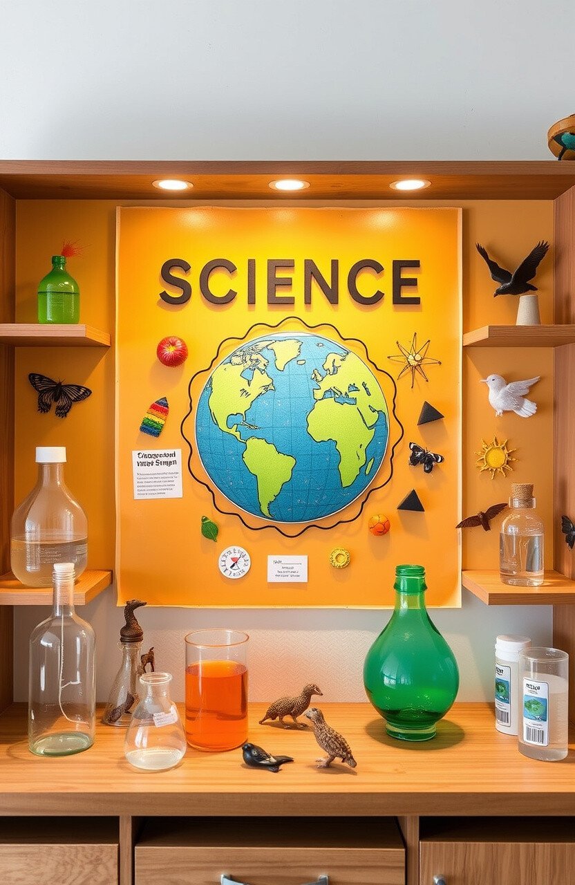 Use posters, models, or experiment results. Change the display regularly to keep it fresh.