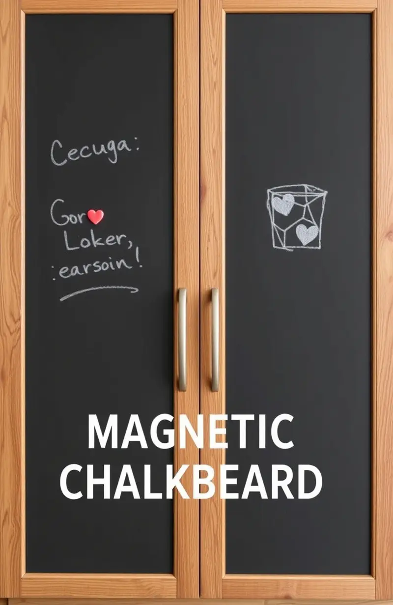 Add magnetic chalkboard panels to your cabinet doors for a functional and fun space. It’s perfect for notes, lists, and kids’ drawings.
