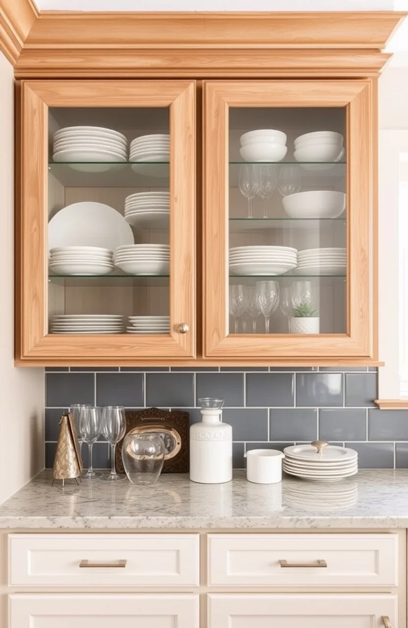 Adding glass fronts to a few cabinets can make your kitchen feel more open. It lets you display beautiful dishes and glassware.