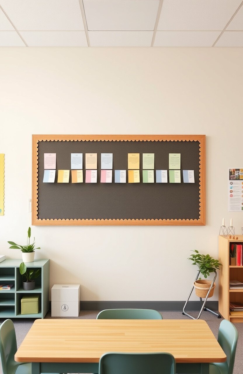 Bulletin boards in calming colors can display student work without overwhelming the senses. Use fabric or paper in soft shades as the background.