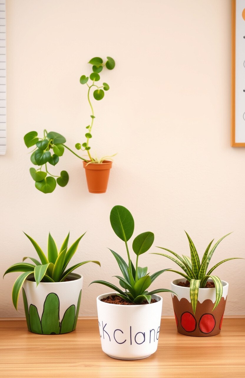 Personalize plant pots with painted designs or labels. This activity can be a fun class project, and plants are a cost-effective way to brighten the space.