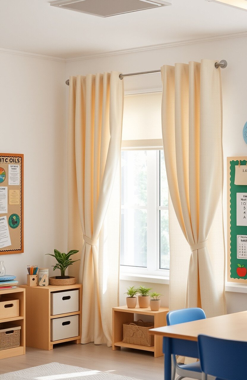 Curtains can provide privacy and reduce noise, creating a peaceful atmosphere. They add warmth and softness, making the classroom feel more like home.