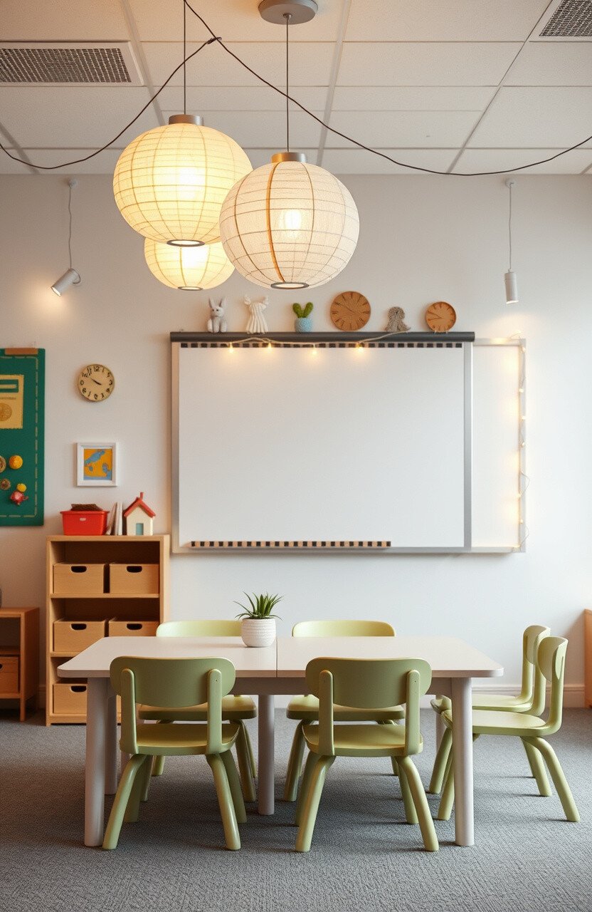 Lamps with adjustable brightness or paper lanterns can add a gentle glow, reducing harsh shadows and eye strain. They bring a homey feel to the classroom.