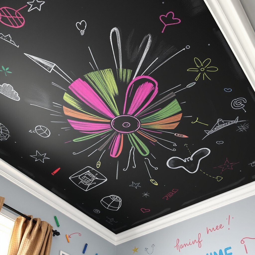 Turn your ceiling into a giant canvas with chalkboard paint. This is perfect for kids’ rooms or creative spaces.