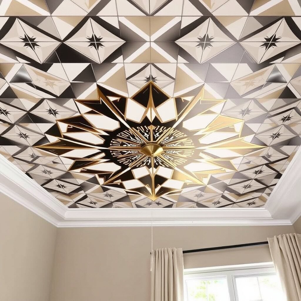 Geometric patterns can add a modern twist to your ceiling. Use stencils or wallpaper to create striking designs with triangles, diamonds, or hexagons. It’s a bold choice that makes your room stand out.
