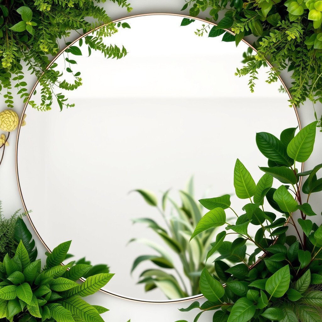Imagine a ceiling mirror surrounded by greenery, creating a lush, indoor garden vibe. This idea is perfect for those who love bringing the outside in.