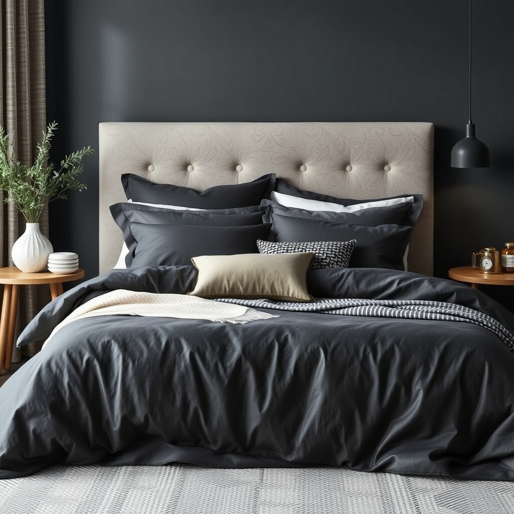 Turn your bedroom into a cozy retreat with charcoal gray bedding. The dark tone creates a calming atmosphere, perfect for unwinding after a long day. It pairs well with soft, neutral pillows and throws, adding layers of texture and comfort.