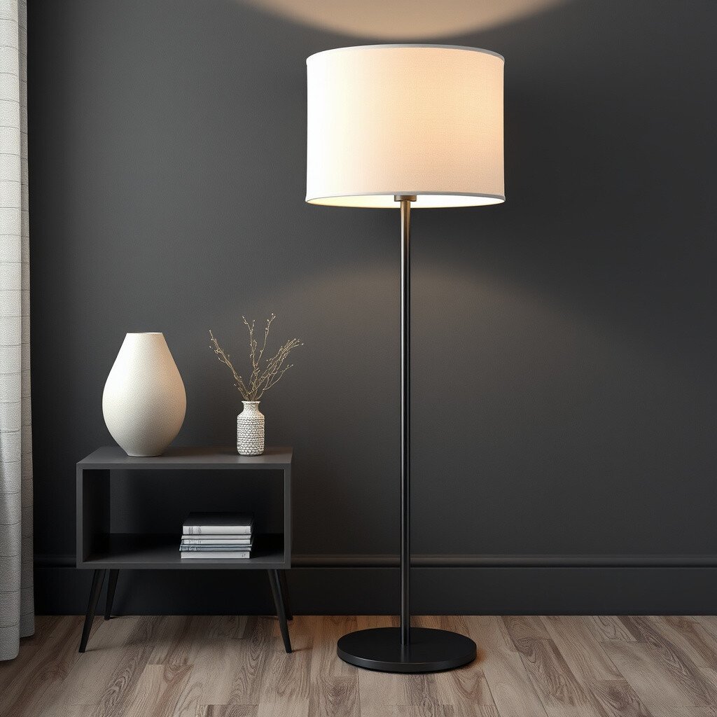 Light up your room with a charcoal gray floor lamp. This stylish accessory offers both function and decor, providing ample light and a sleek design. The dark color adds a modern touch and blends well with various styles.