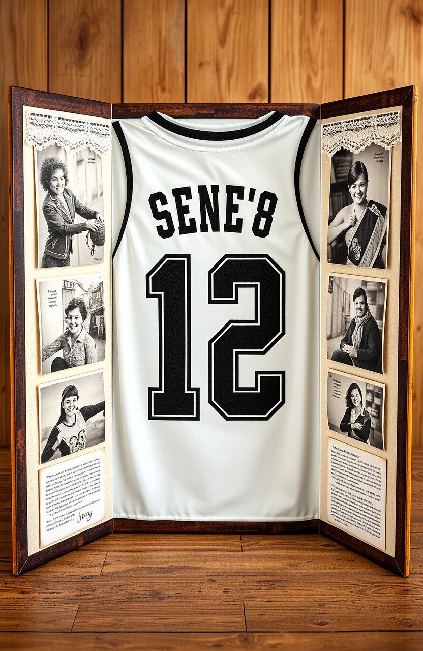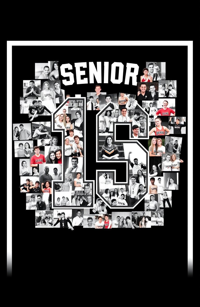 Capture the year’s best moments by creating a photo collage around your jersey number. This idea is perfect for showcasing team events, competitions, and memorable cheerleading moments.