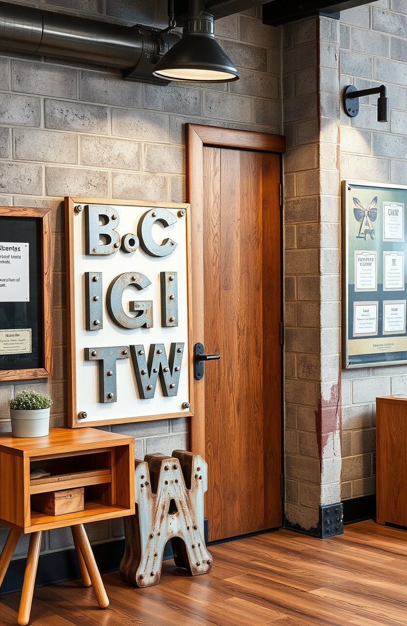Incorporate an industrial edge with metal or concrete alphabet letters. This style is great for those who love urban and modern aesthetics.