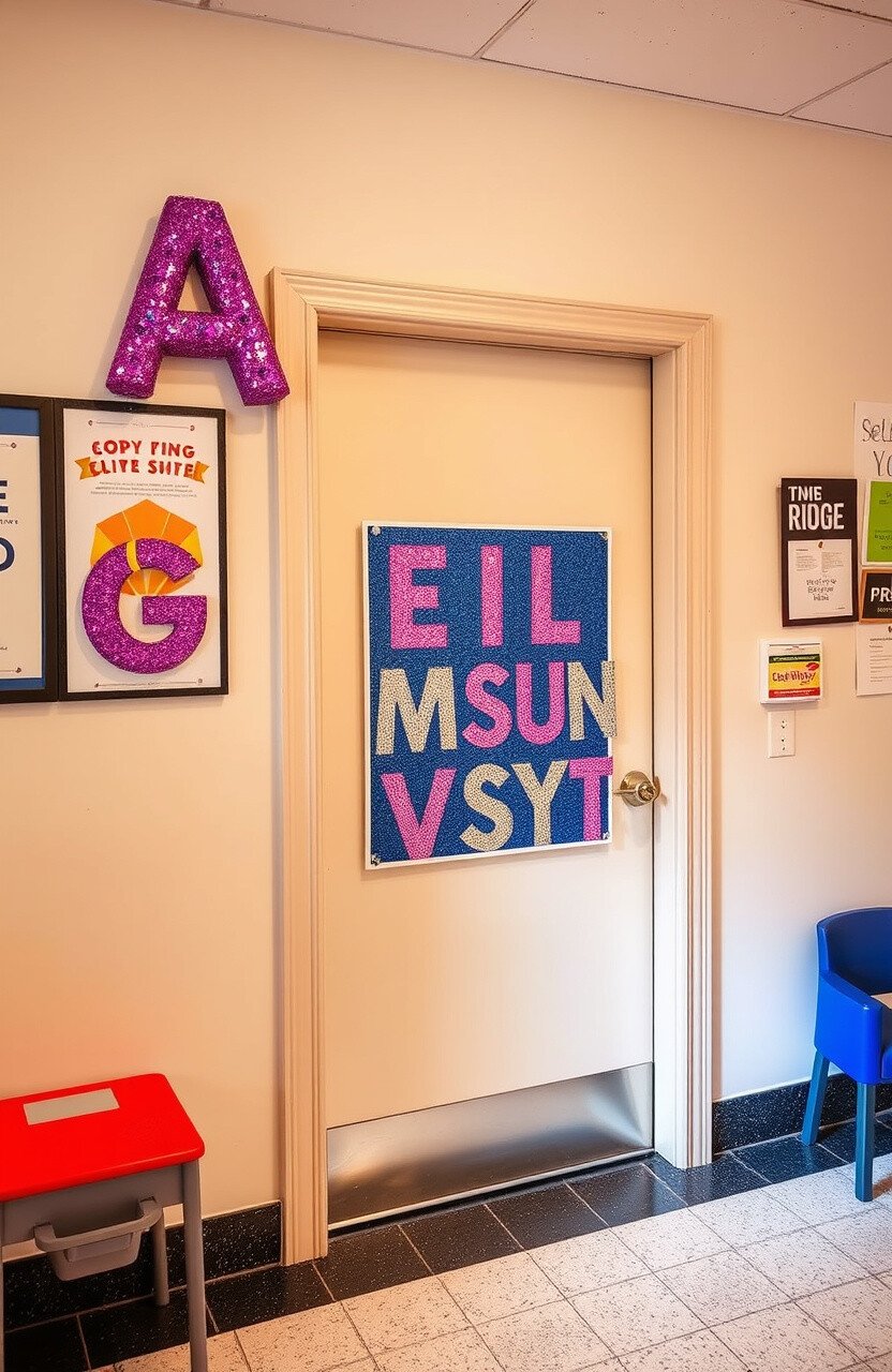 Make your entryway sparkle with a glittery alphabet poster. Ideal for those who love a bit of glam and shine.