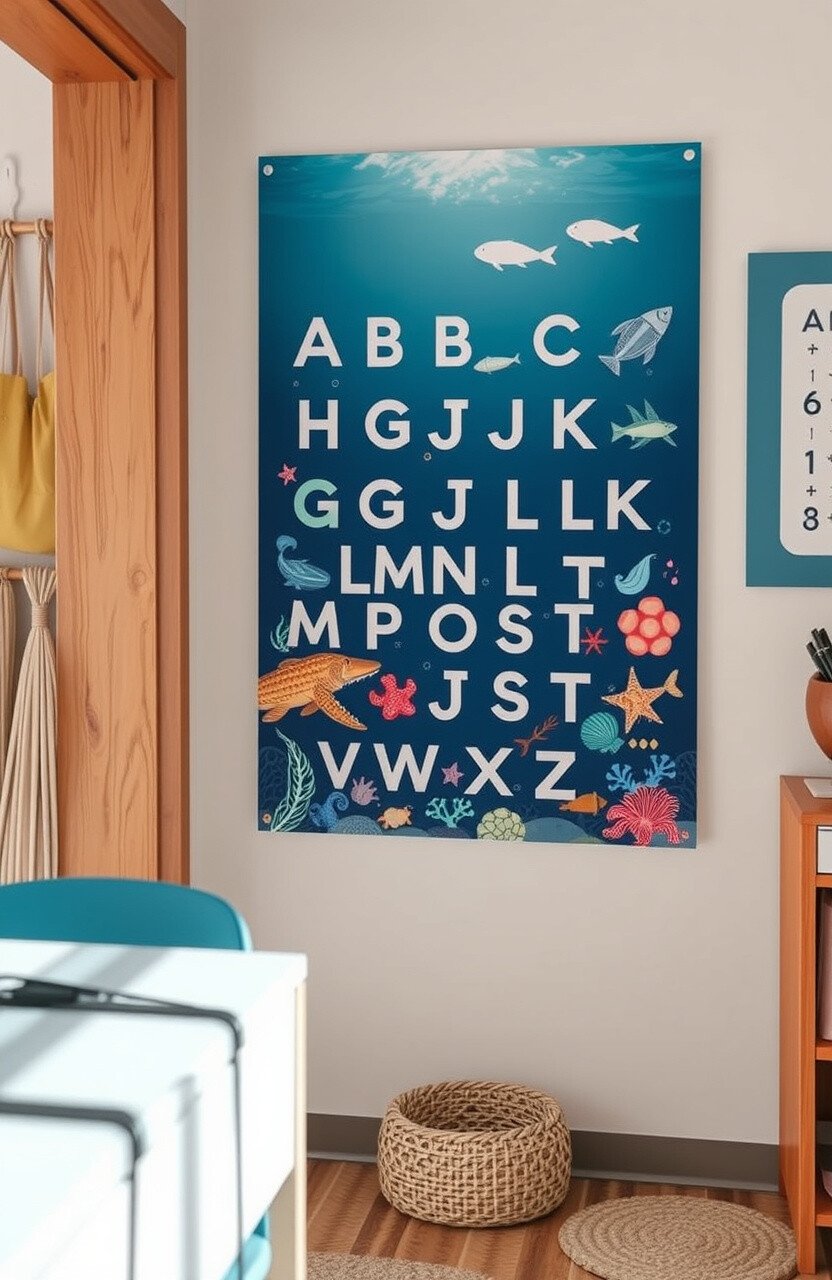 Bring the deep blue sea to your entrance with an ocean-themed alphabet poster. Perfect for those who love marine life and the sea.
