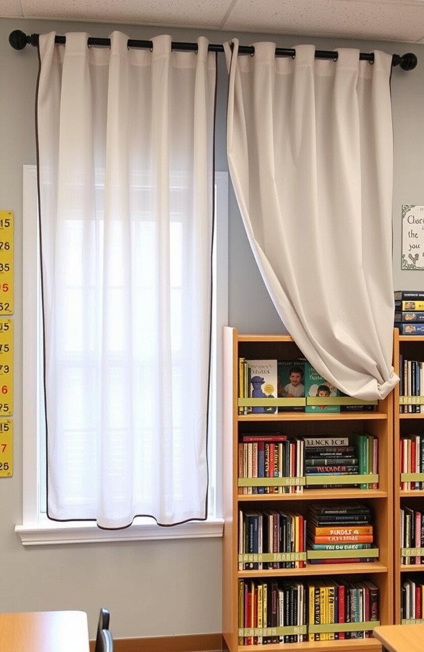 Choose a colorful or themed curtain for added interest. You can even let students help choose the curtain design.