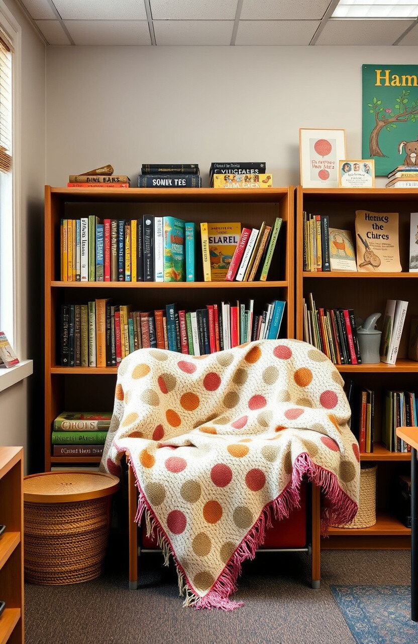 Place cozy blankets near the bookshelf for warmth and comfort. This makes reading time feel extra special.