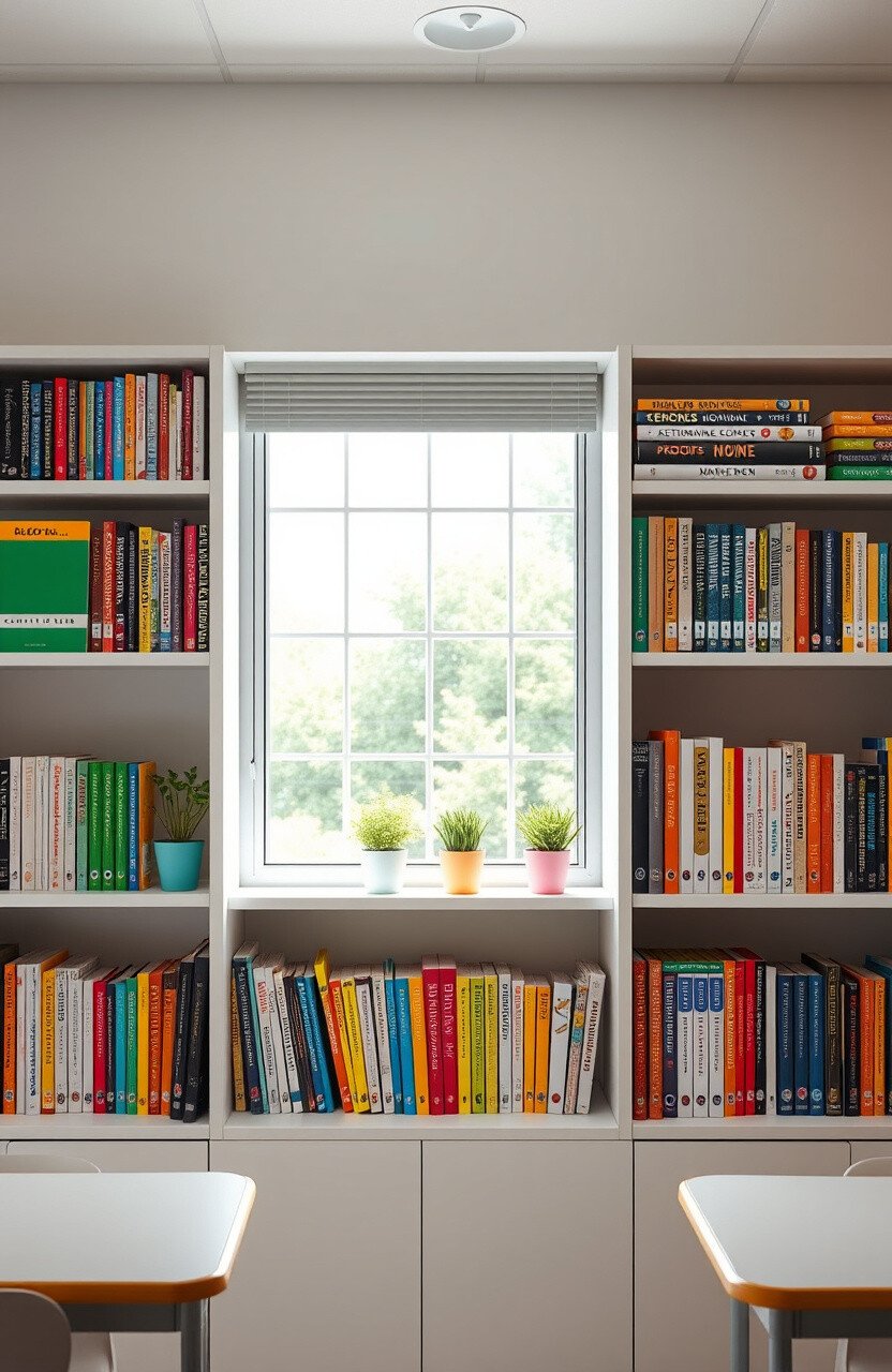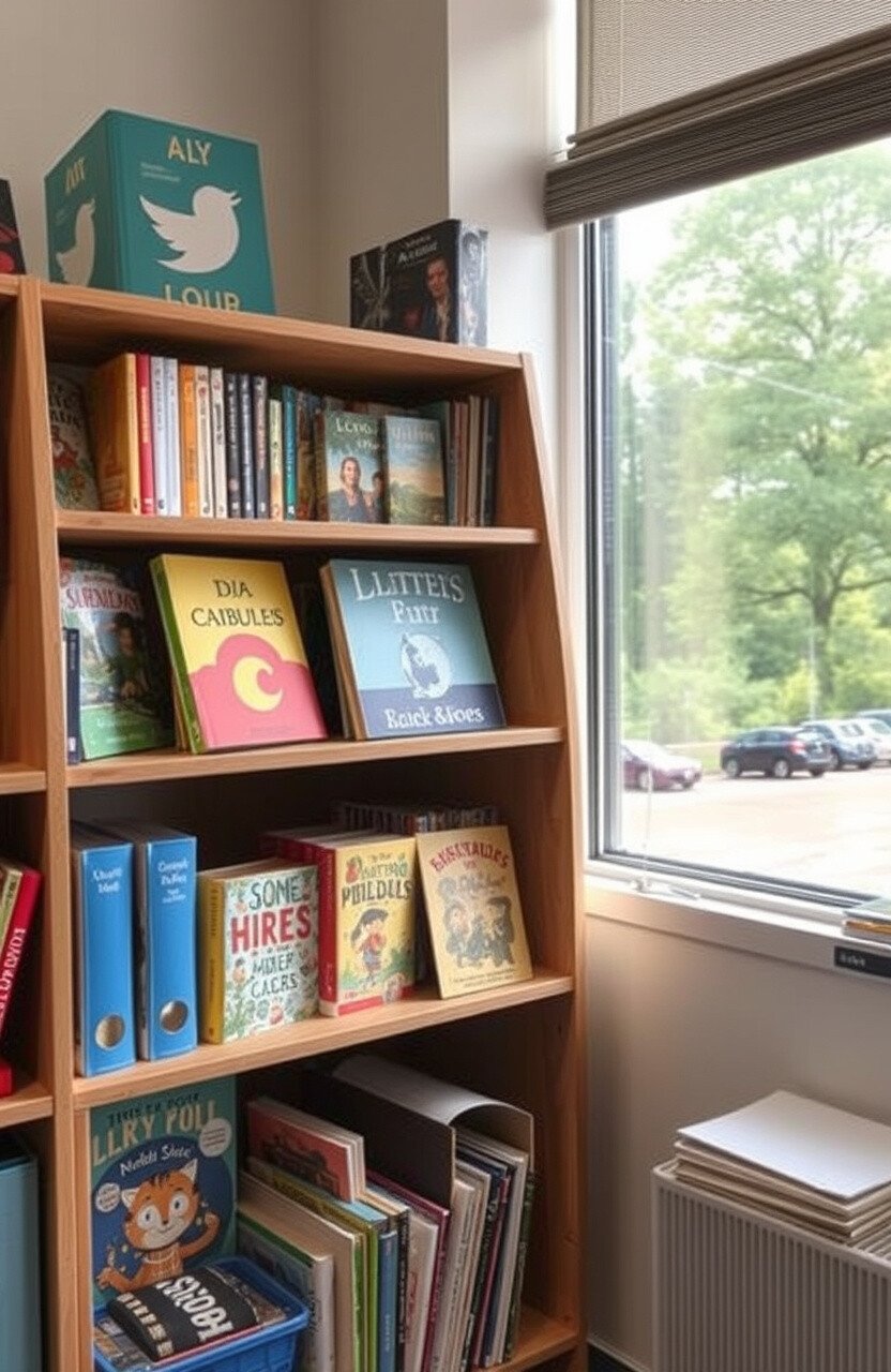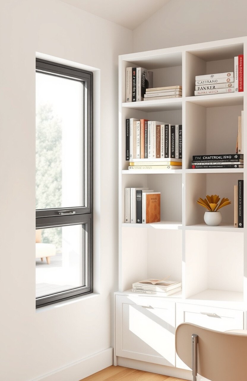 Install floating shelves near the window to save space. They create a modern look while holding plenty of books.