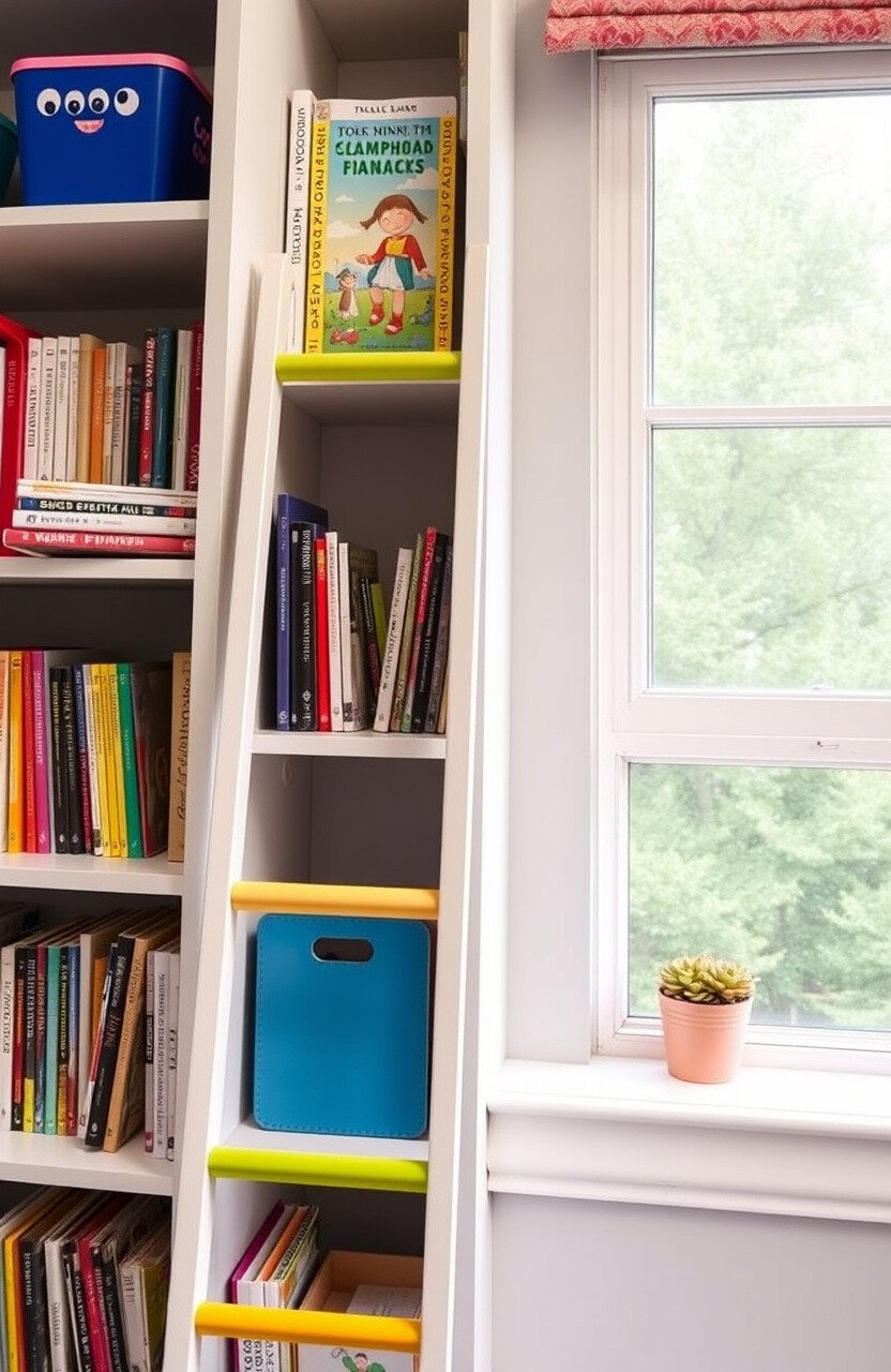 Add a small ladder to the bookshelf for reaching higher shelves. This adds a touch of whimsy and adventure.