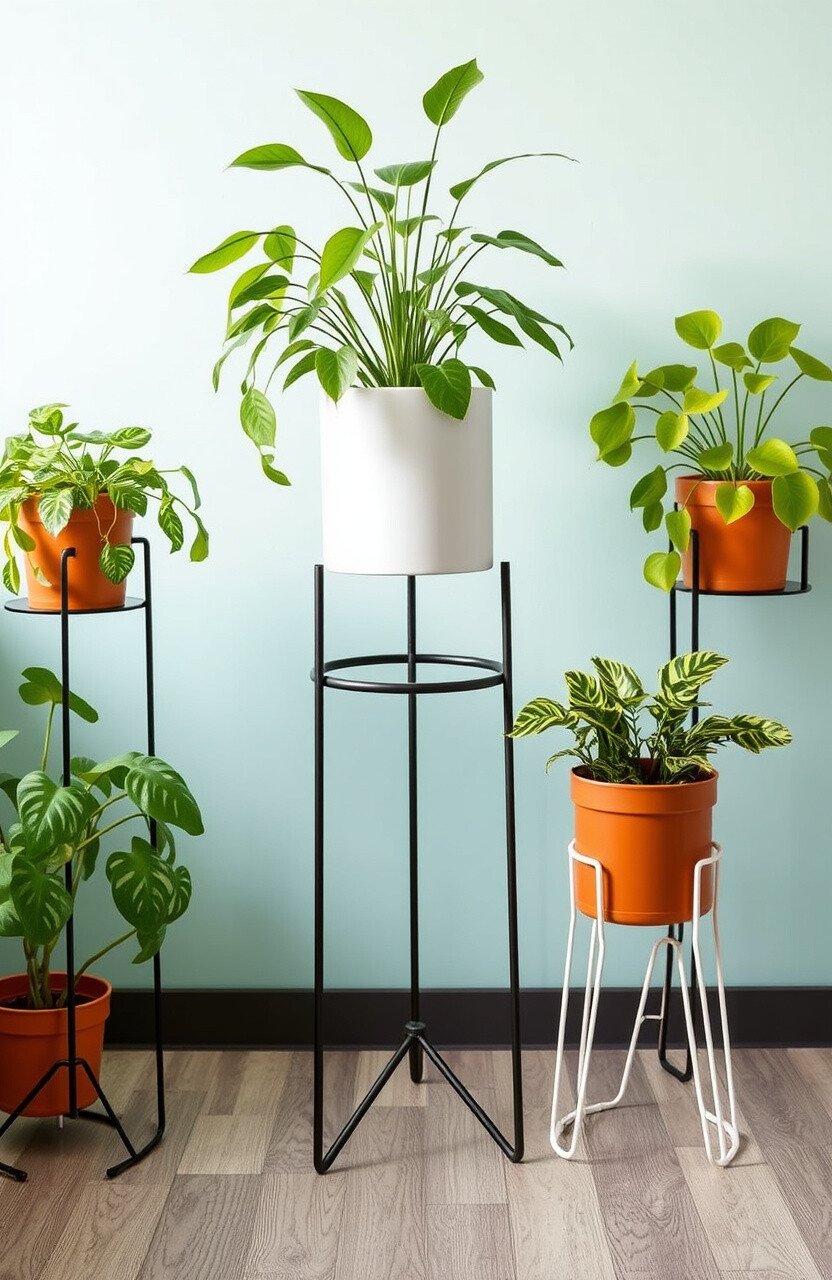 Metal plant stands elevate greenery stylishly. They are durable and sleek. These stands add height to classroom decor. They come in various designs to suit any theme.