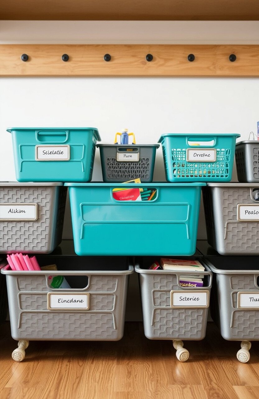 Label them for an organized look. Personalize with stickers or student names. Metal bins are economical and widely available. They make tidying up quick and easy.