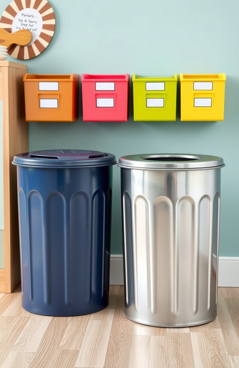 Choose colorful bins to add a pop of color. Personalize with labels for recycling. Metal bins are cost-effective and widely available. They make waste management stylish and simple.