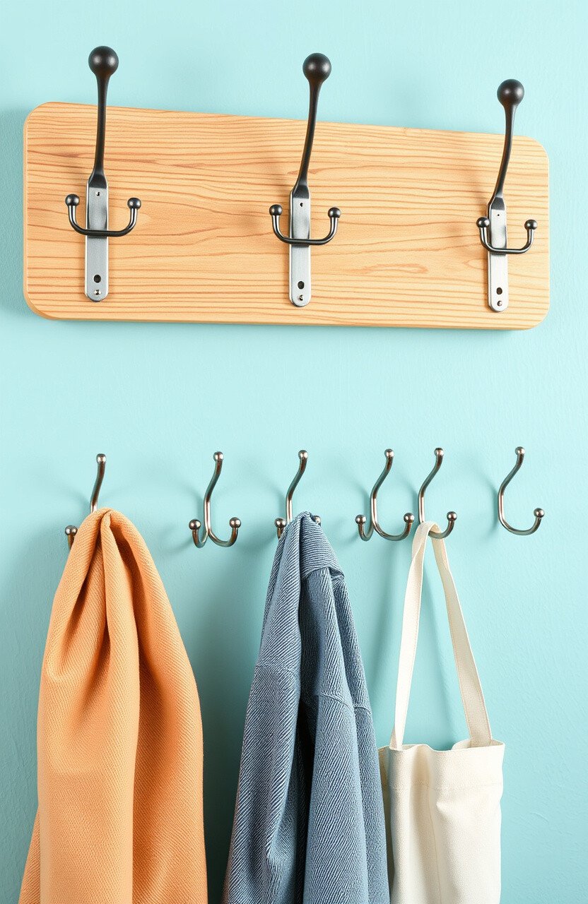 Metal wall hooks add a modern touch to organization. They are durable and versatile. These hooks come in various designs and sizes. They keep coats and bags tidy.